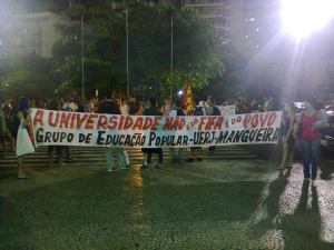 Caption: “The university is not FIFA’s. It’s the people’s. 2014. Photo by Grupo de Educação Popular UERJ