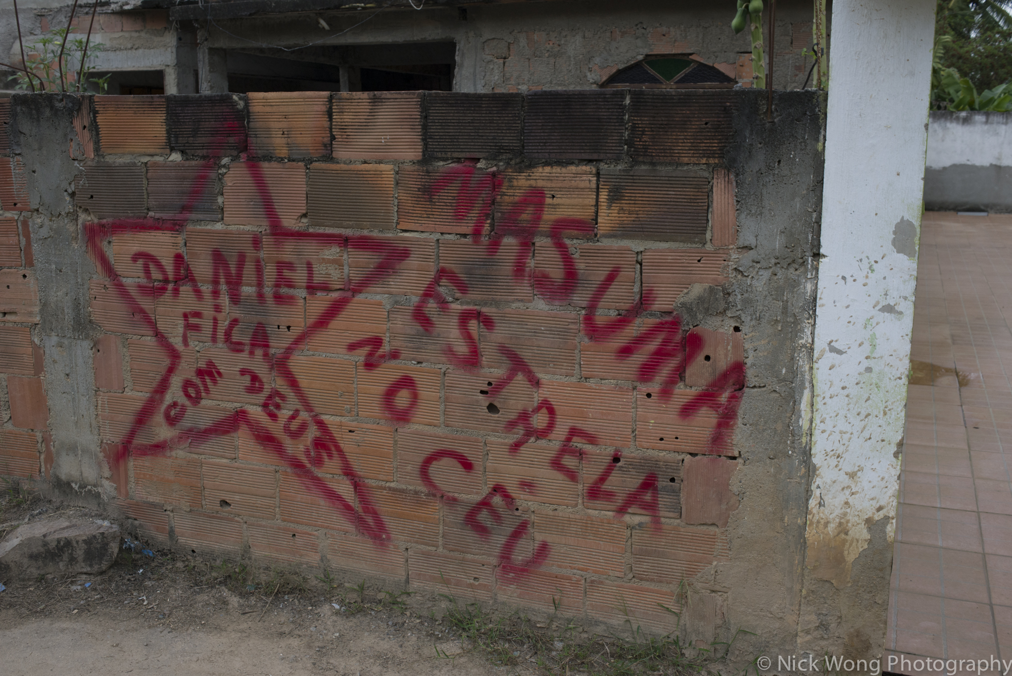 Graffiti seen throughout the neighborhood. Pictured here is a homage to a local drug trafficker that passed away recently in a police operation. Fazenda do Mineiros suffers from one of the highest rates of violence in Brazil due to the heavy presence of drug trafficking in the area. Letters read: “Daniel May God be with You” and “One More Star in Heaven.” Photo by Nick Wong CC BY-NC-SA 4.0